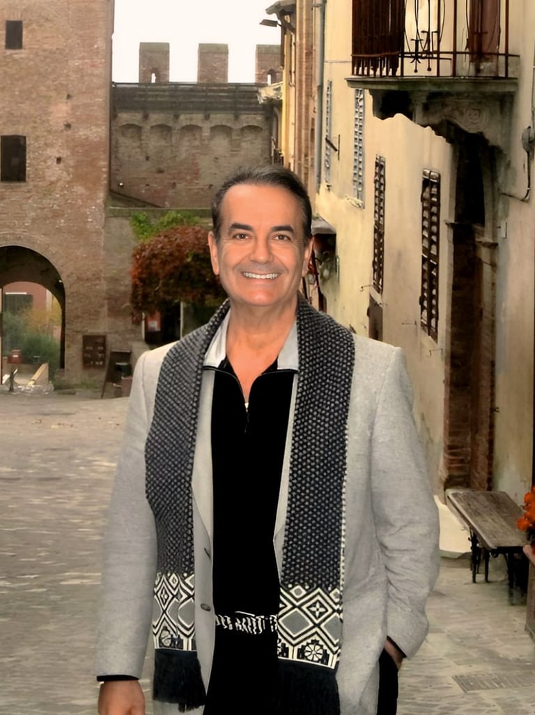 Balancing his role as a university professor with a PhD in foreign languages and anthropology, he embodies the essence of a modern-day "renaissance man" as a multilingual (italian, english, french, portughese, german, arabic) artist with a myriad of artistic pursuits. Whether through poetry, prose, or music—playing guitar, piano, and saxophone—Antonio masterfully weaves his feelings into creative expression. His talent extends to painting and sculpting, allowing him to shape color and texture into expressive form.